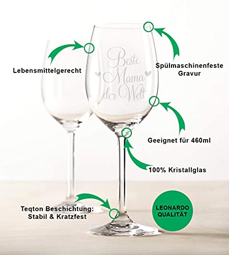 Leonardo Weinglas mit Gravur – Beste Mama der Welt – Geschenk für Mama ideal als Muttertagsgeschenk – Weißweinglas…